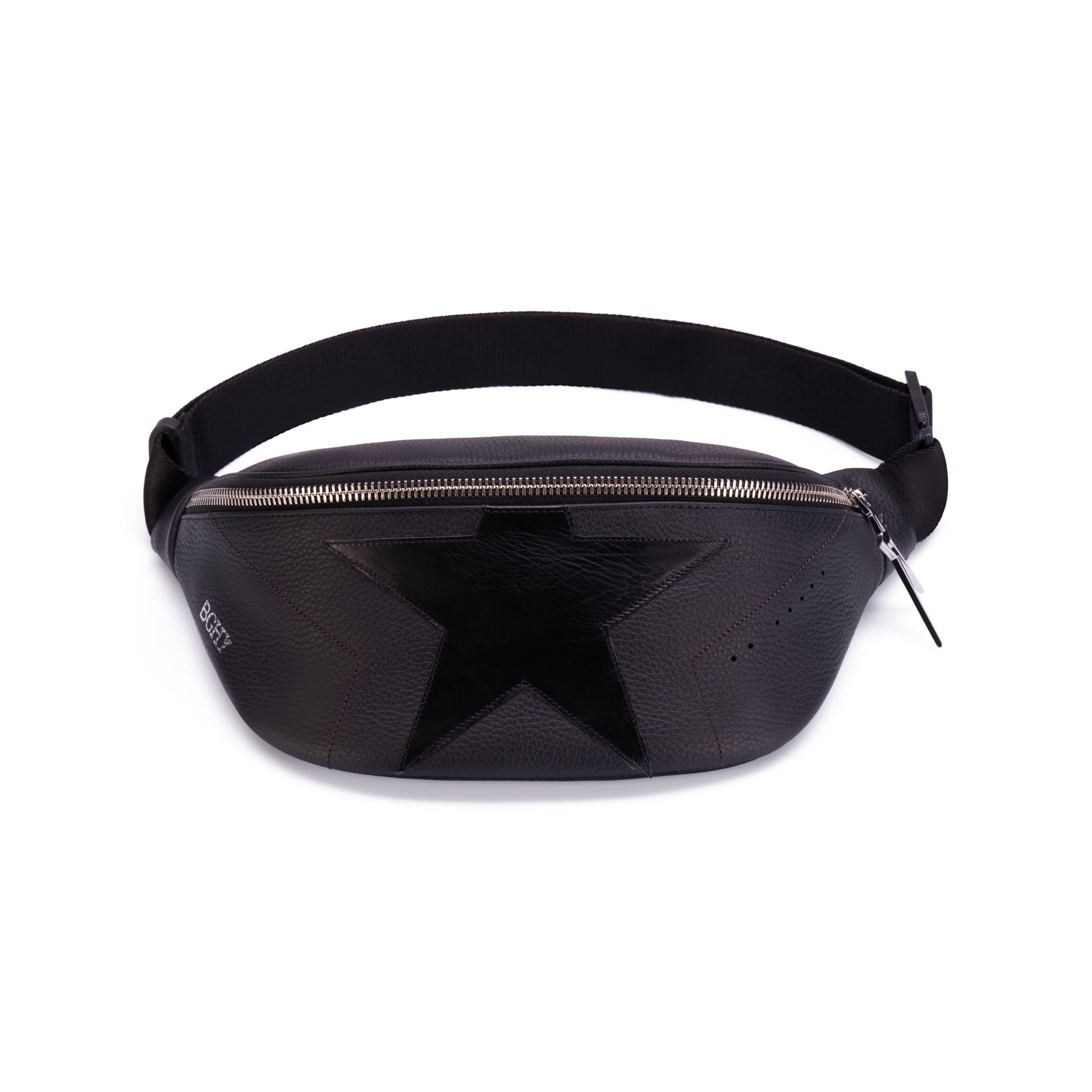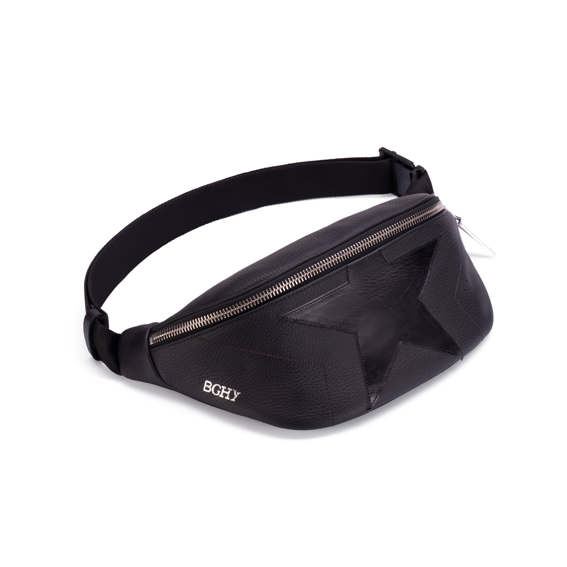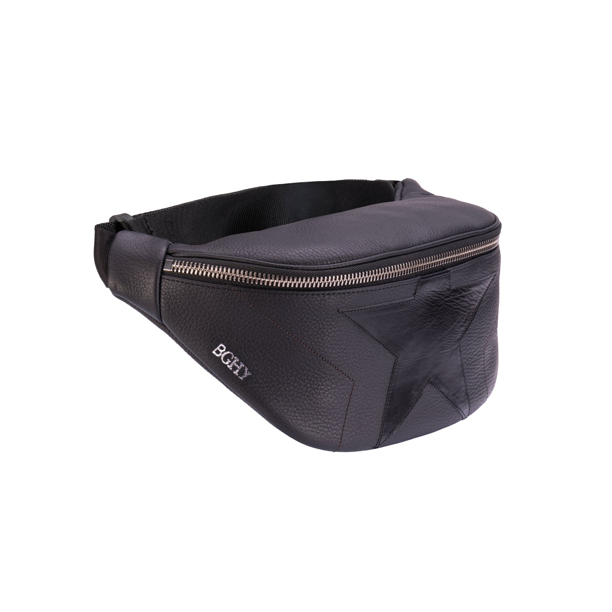 Il marsupio BGHY in pelle nera è una dichiarazione di forza e stile senza tempo.