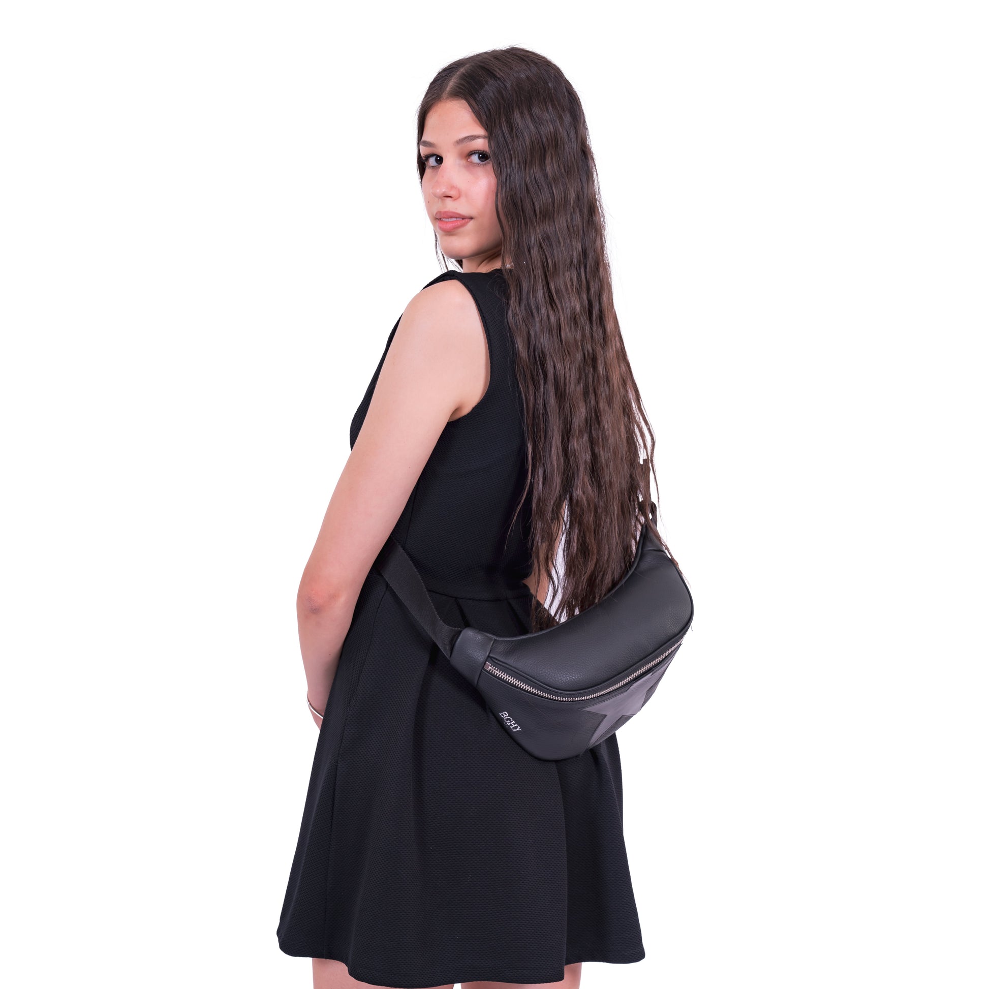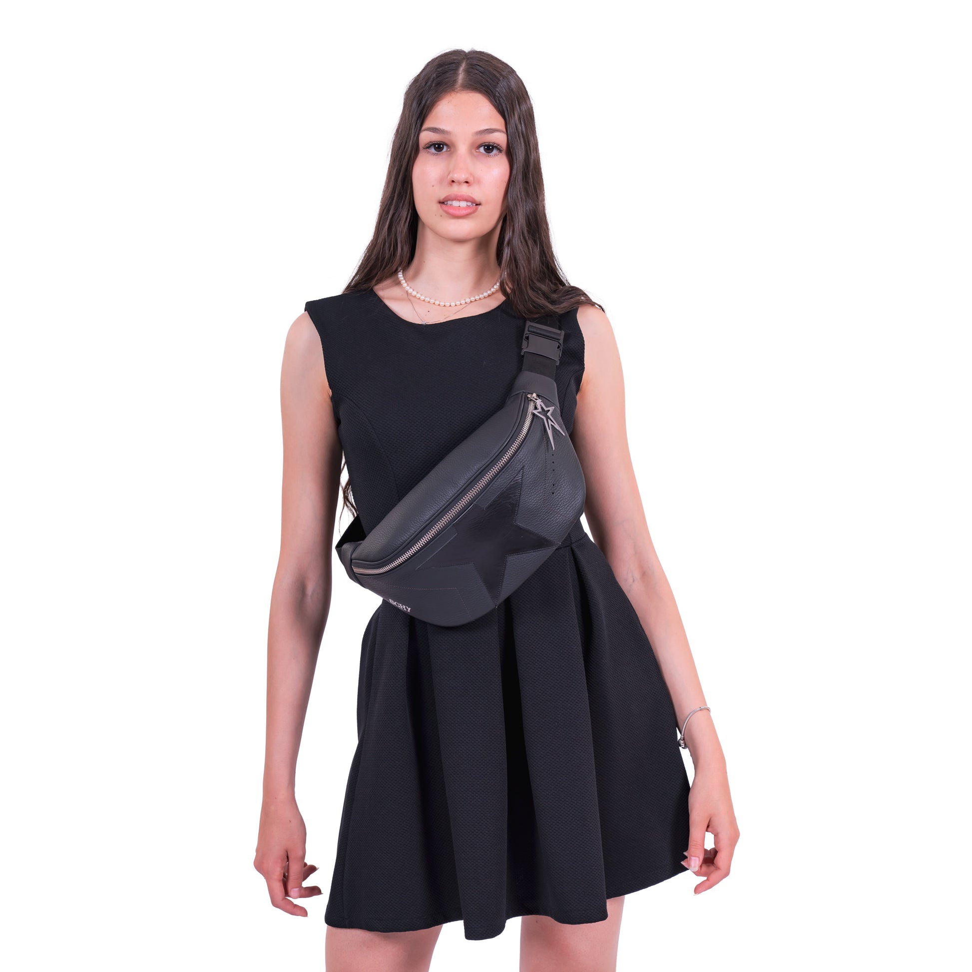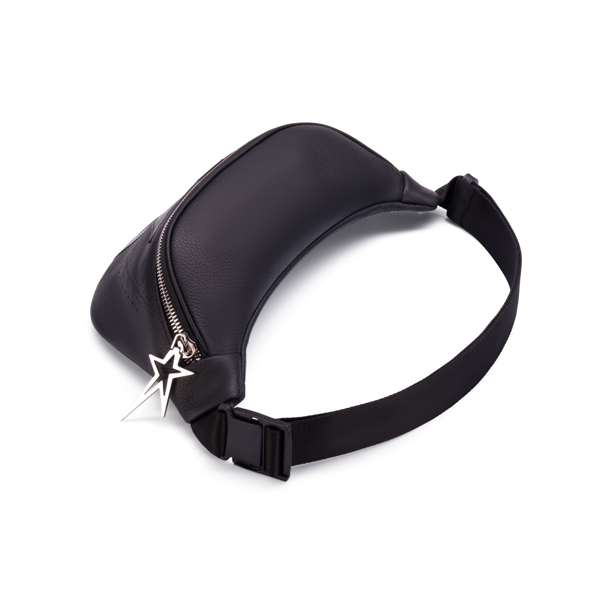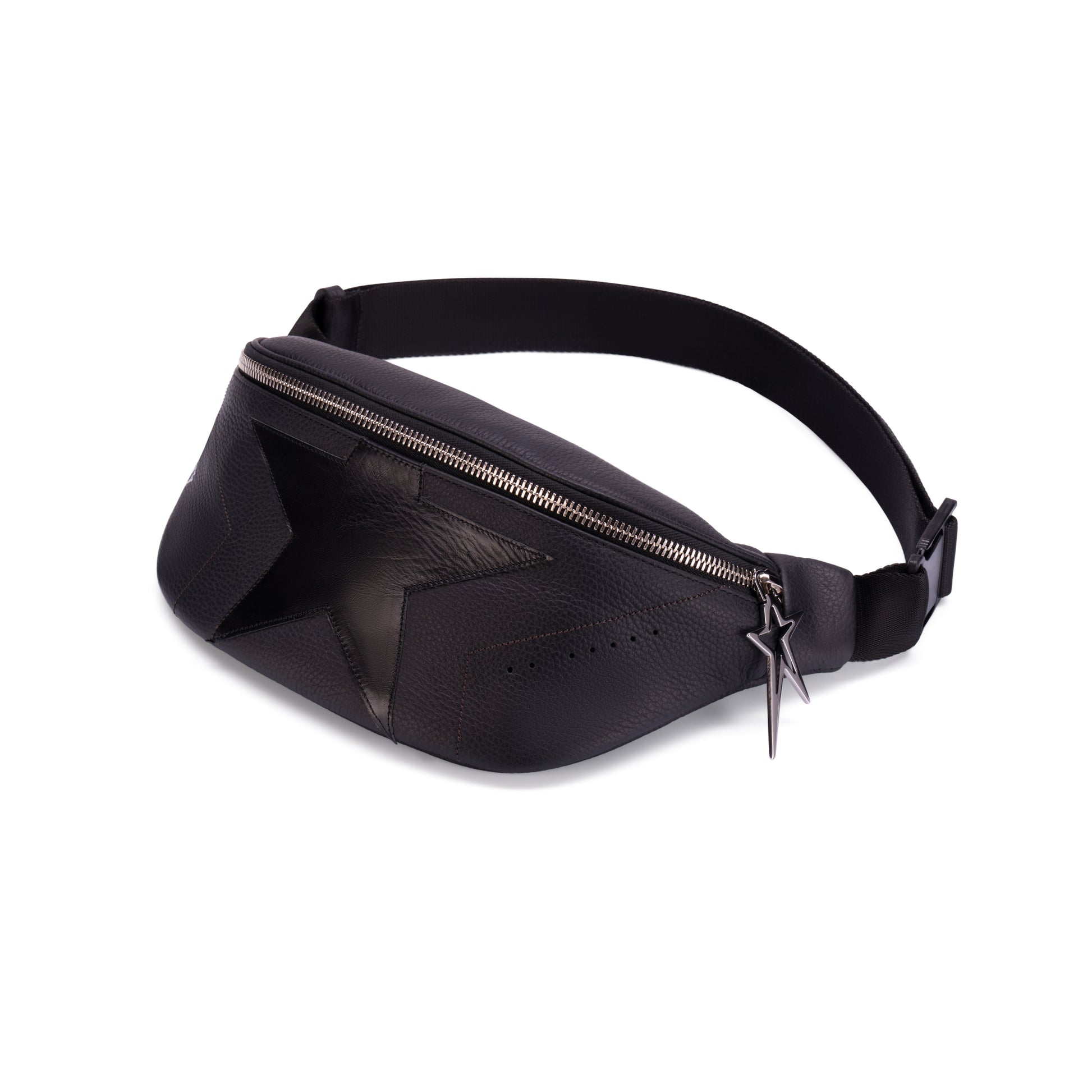 Il marsupio BGHY in pelle nera è una dichiarazione di forza e stile senza tempo.