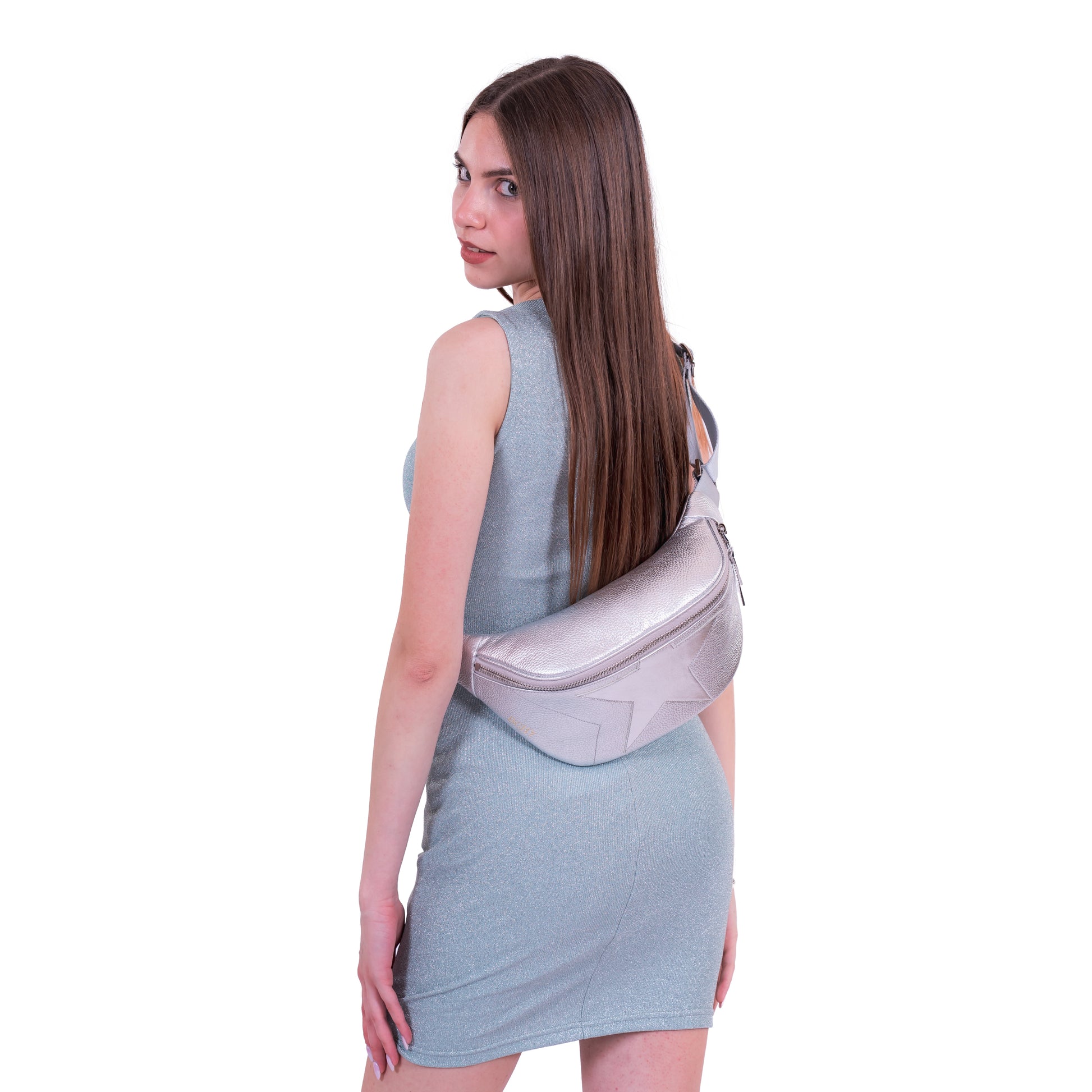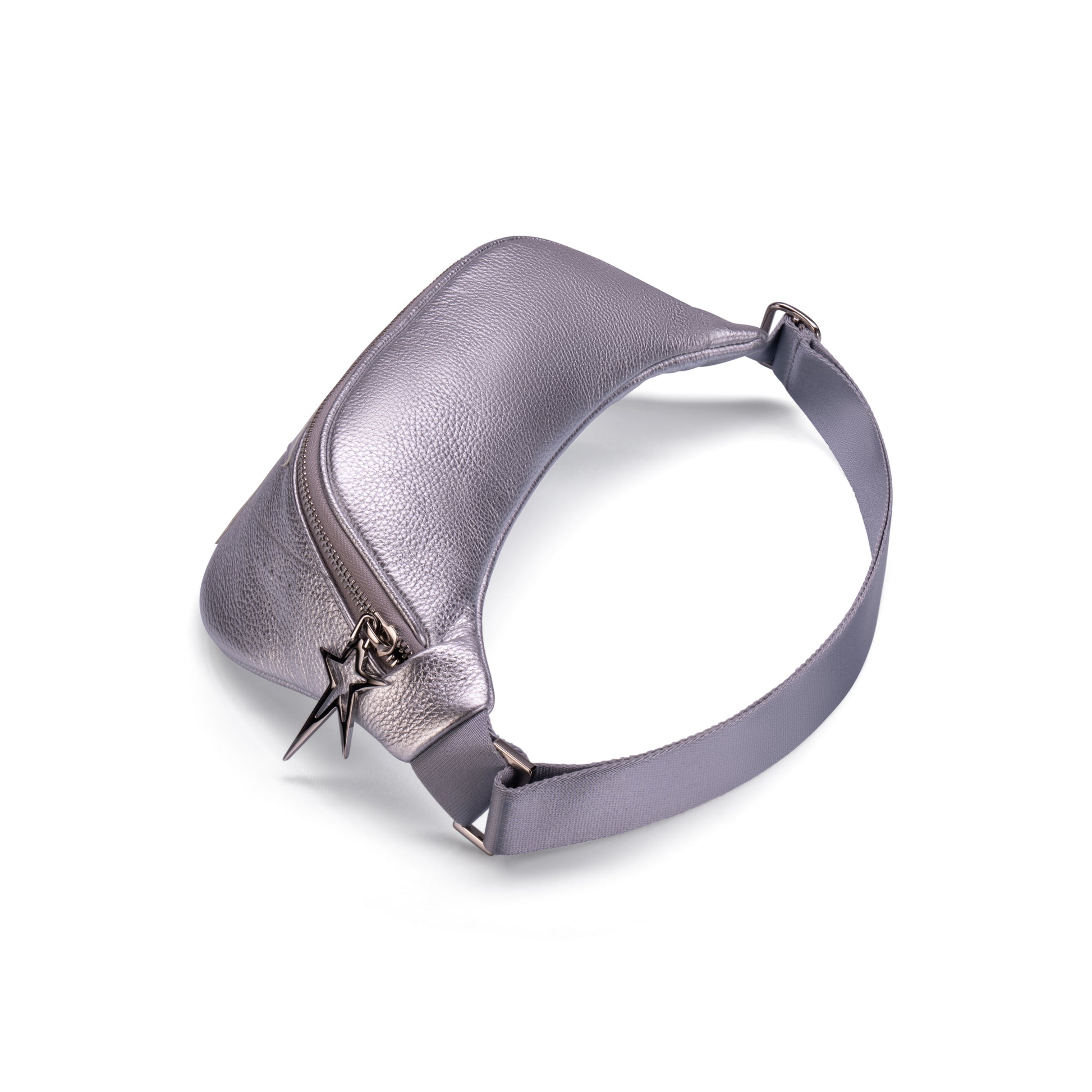 Metallico, moderno, audace. Il marsupio argento BGHY è per spiriti liberi e menti creative.